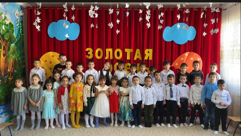 28.10.2021В детском №2 "Иман" прошел утренник "Золотая осень",один из любимых праздников детей.Воспитптели старших и средних гркпп подготовили интересную программу.Праздник получился замечательный:стих,осенние композиции,красивые наряды.Дети в красивых нарядах напоминающие осень пели песни,танцывали,играли в разные игры.Праздник получился насыщенным и интересным.