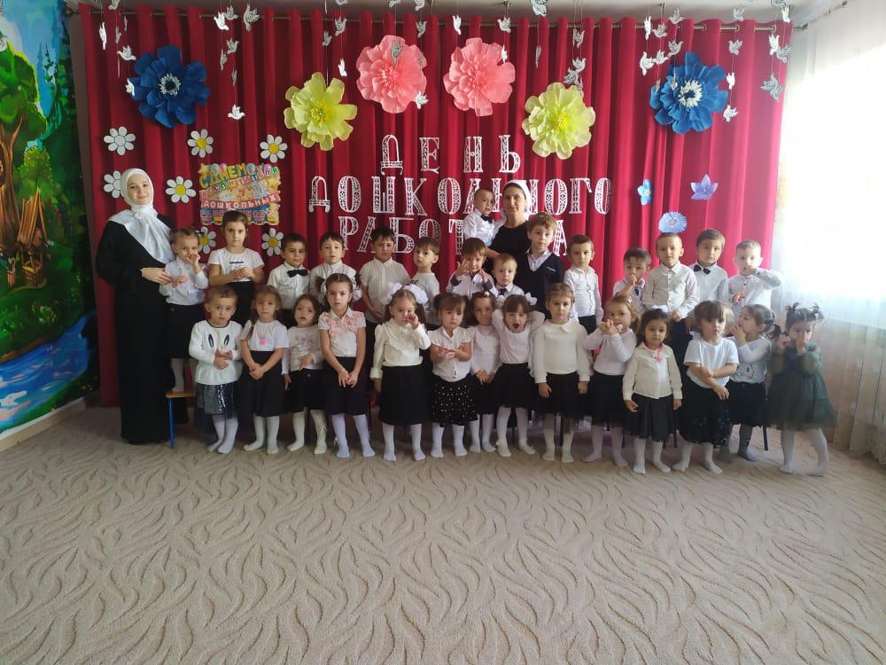 27.09.2021В ГБДОУ «Детский сад № 2 «Иман» прошел утренник ко Дню дошкольного работника.Воспитатели серьезно отнеслись к данному мероприятию.Дети читали стихи,пели песни,для них были проведены конкурсы,дети исполнили национальный танец.И сотрудники и дети остались довольны.