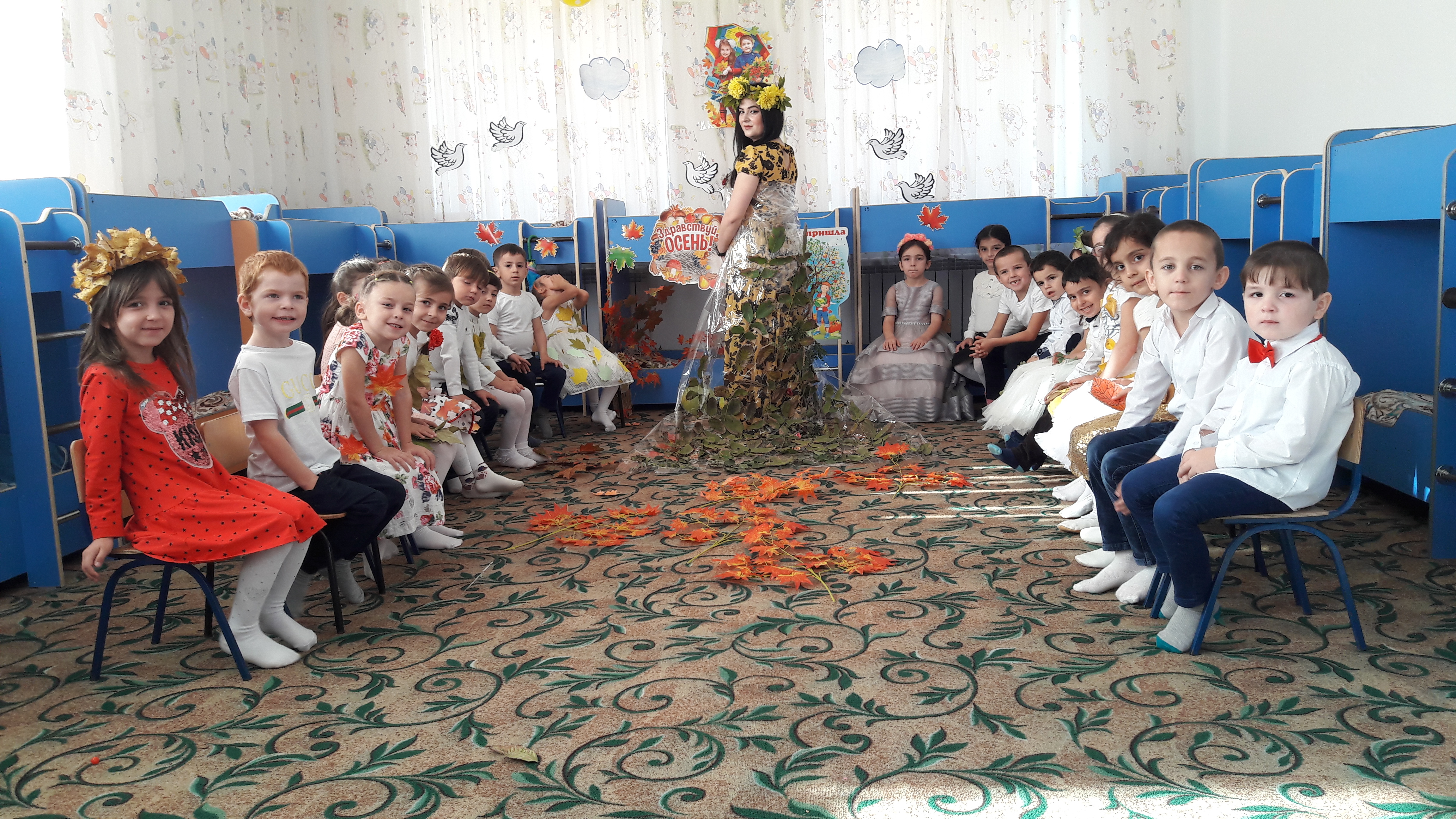 29.10.2018В ГБДОУ №2 "Иман"ст.Шелковская Шелковского муниципального района" в старшей группе "Почемучки"прошел утренник "Осень золотая",один из любимых праздников детей.Воспитатели подготовили интересную программу .Воспитанники старшей группы проявили активность в подготовке к данному мероприятию,праздник получился замечательным: стихи,осенние композиции,красивые наряды.Ребята с удовольствием выступали и принимали участие в конкурсах.Праздник получился насыщенним и интересным!
